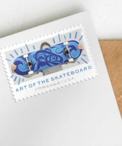 Stamp Purpose: Celebrates skateboard deck artistry. along with three other Art of the Skateboard stamps.